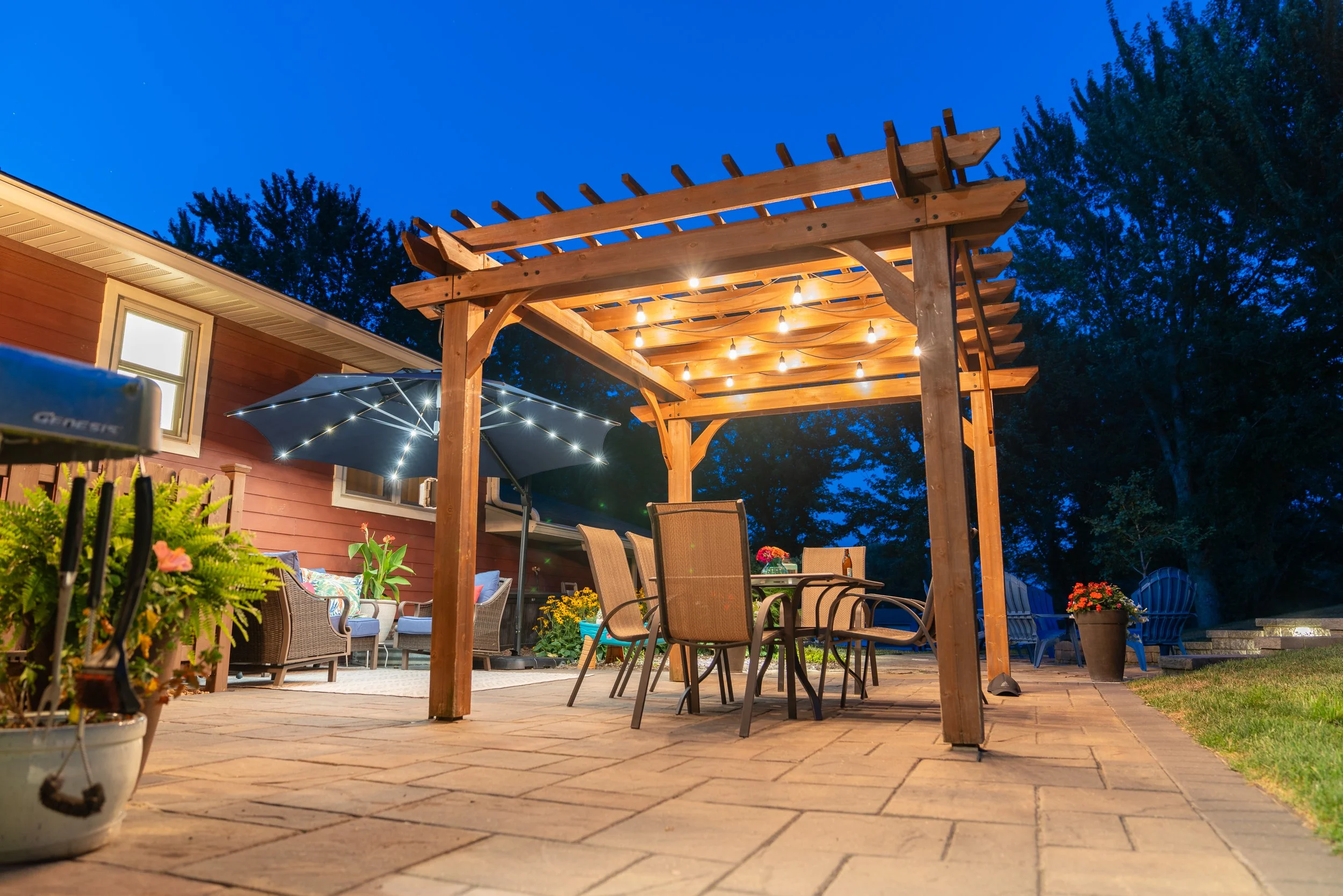 Subtle, integrated lighting for stairs, railings, and hardscape ensures your entertainment areas are safe and inviting for evening gatherings.