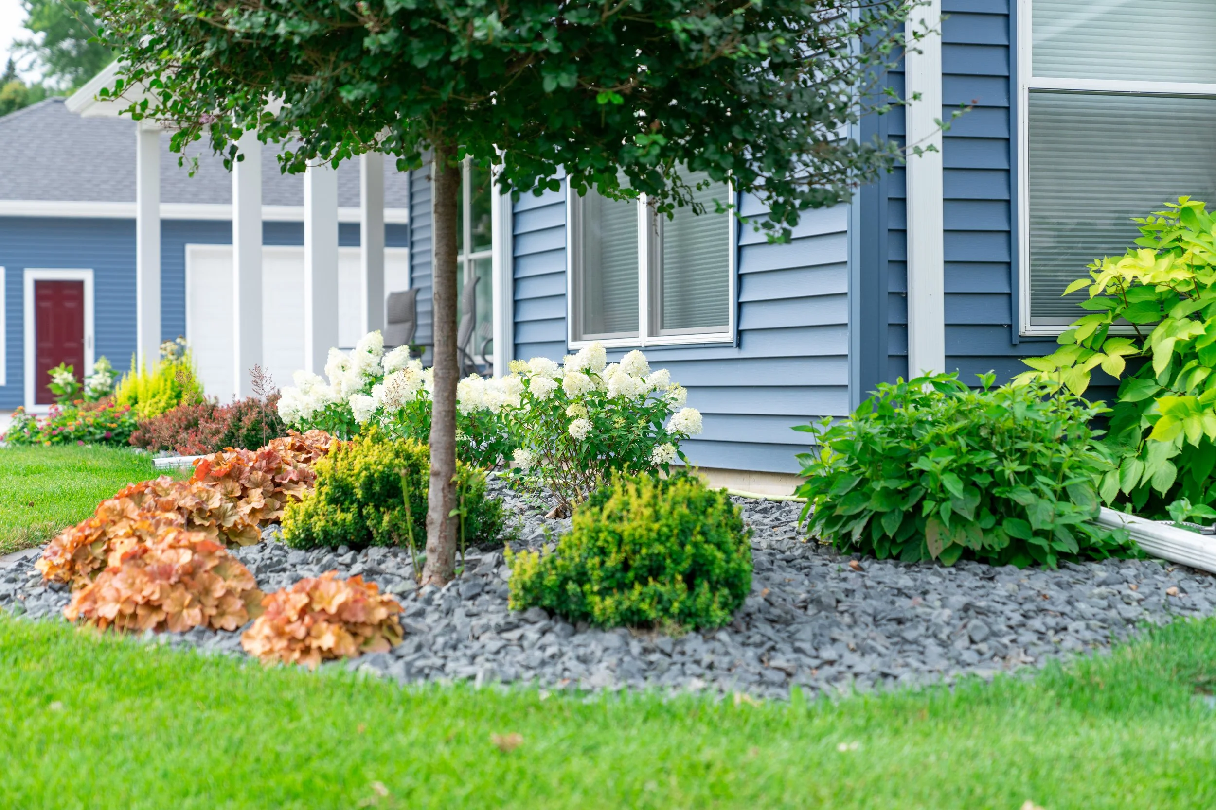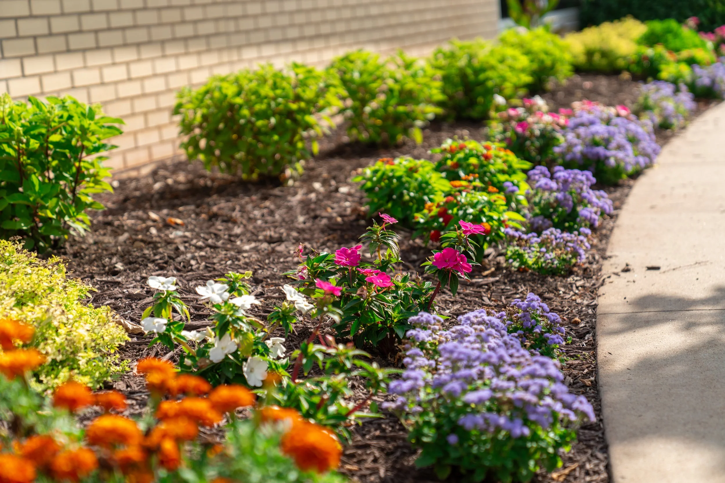 During the growing season, we remove old blooms from perennials and lightly trim shrubs. This helps new growth, keeps flowers blooming longer, and makes your garden look tidy.